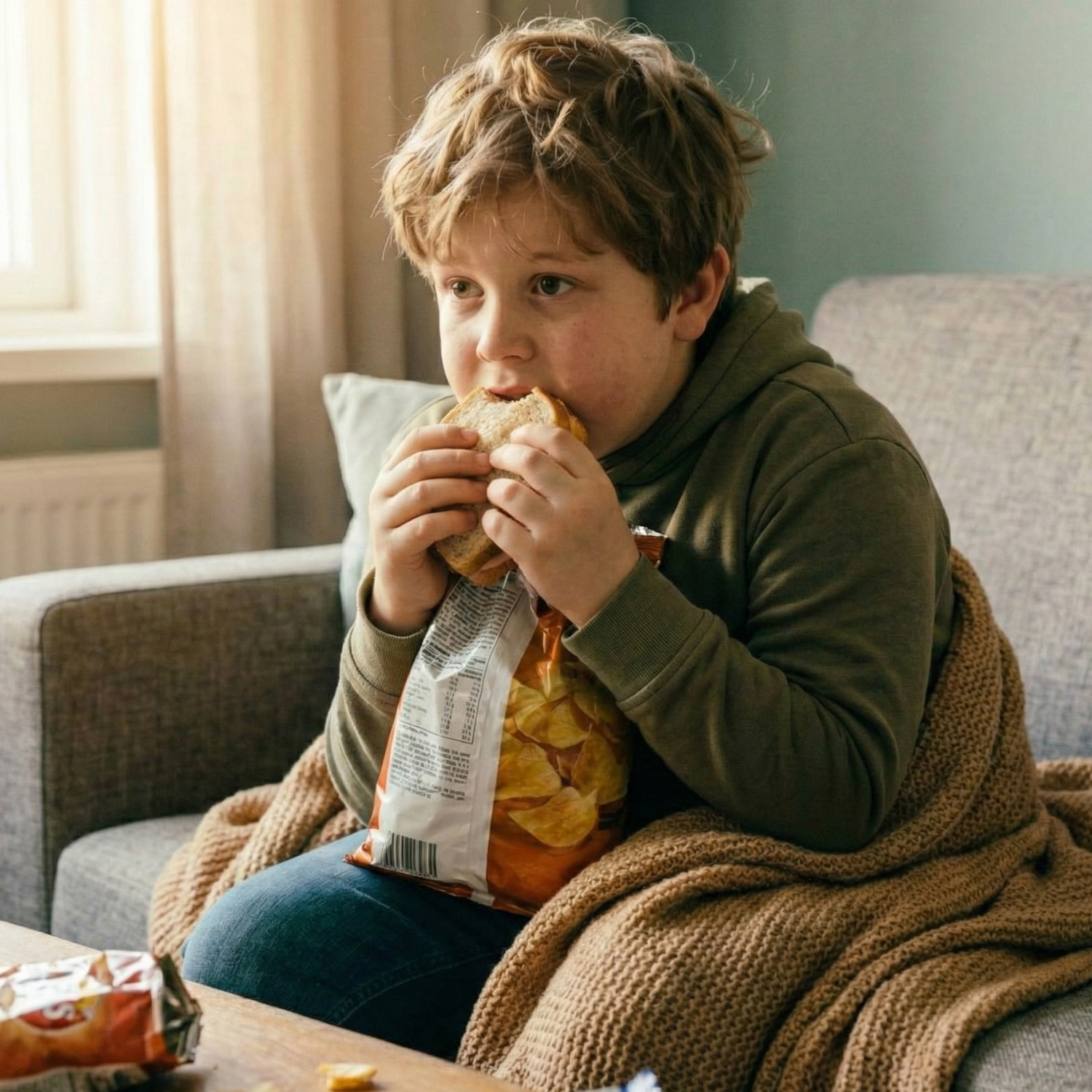 Das Gehirn hat eine Verknüpfung erstellt: "Wenn ich Angst habe → Essen macht es besser." Deshalb ist dein Kind nie satt – egal wie viel es isst. Es isst nicht aus Hunger, sondern weil es der einzige Weg ist, wie es sich sicher fühlt.